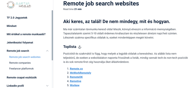 Az első 2-3 meeting után egészen elbizonytalanodtam, hol is tartok az önéletrajzommal, vagy a LinkedIn profilommal. Arról kapunk a képzést ezidőben, miben kell mást adni egy távmunka-jelentkezéskor, mennyire a soft-skill-ekre fókuszáljunk, az önjellemzésnél hogyan hivatkozzunk meg pontos adatot eredményként, milyen mélységében találjuk meg a saját történetünkben az azonosulást a kiválasztott cég értékeivel. És kapunk mellé egy listát 13+2+5 távmunka-kereső oldalról.